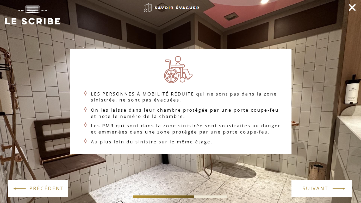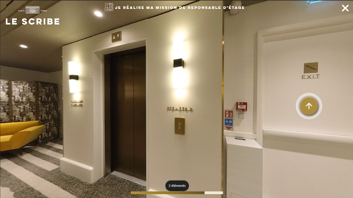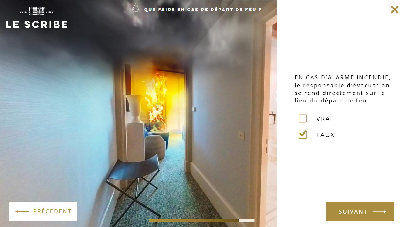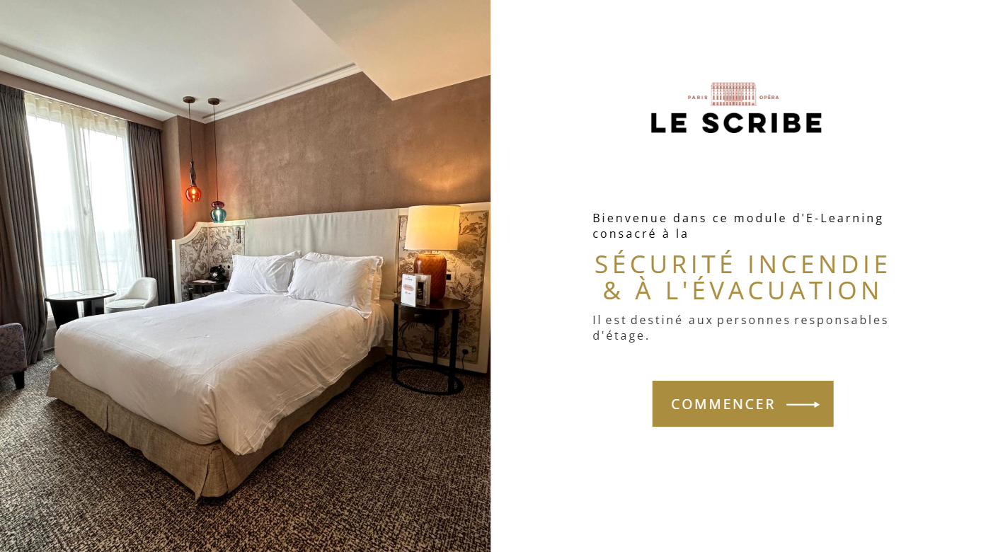Retour E-learning « 360° » sécurité incendie Hôtel le Scribe Identité, animation et intégration Storyline – 2024 Cliquez pour voir le module